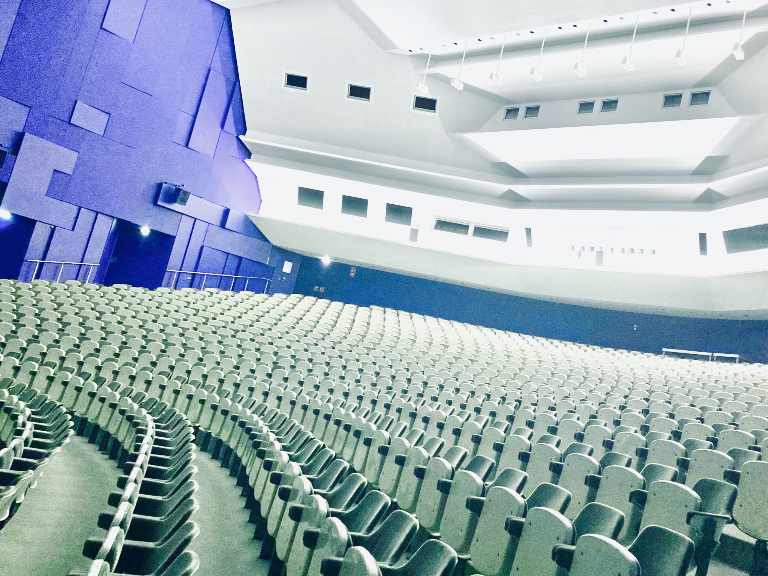 Vorbühne, Eiserner Vorhang, Seitenbühne, Podien Bühne, maschinelle Züge, Hand Züge, Opera-Leinwand 18 x 10,5 m, Klavier, Flügel. Portal 12-16×5-7m, Hauptbühne 25x22x23m, Orchestergraben 90 qm für 70 Musiker, 13 Garderoben inklusive 4 Sammelgarderoben für ca. 200 Personen, Techniker-Aufenthalt für ca. 30 Personen.
